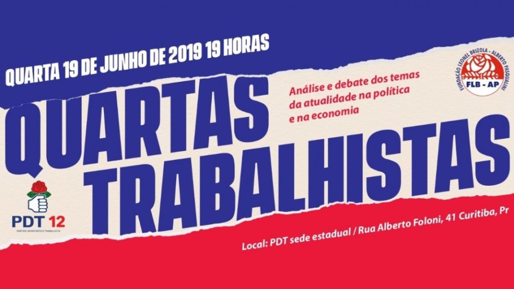 O PDT do Paraná (PDT-PR) e a Fundação Leonel Brizola – Alberto Pasqualini do (FLB-AP/PR) promovem, nesta quarta-feira (19), o primeiro “Quartas Trabalhistas”, um novo projeto que abre espaço ao debate sobre temas da atualidade política e da economia. O evento acontece na sede do partido, a partir das 19h.
