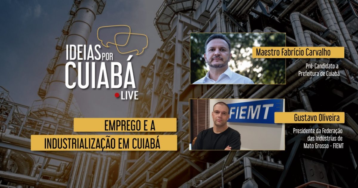 Chegou a vez de falarmos dos desafios da industrialização e da geração de emprego em Cuiabá. Nesta sexta-feira (10), o pre-candidato à Prefeitura da capital mato grossense Maestro Fabrício Carvalho conversará com o presidente do Sistema Federação das Indústrias do Estado de Mato Grosso (Sistema Fiemt), Gustavo Oliveira, para em mais edição da série de lives ‘Ideias por Cuiabá’.