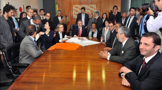 Três ministros do governo Dilma Rousseff, Brizola Neto (Trabalho), Maria do Rosário (Direitos Humanos) e Luiza Bairros (Igualdade Racial) defenderam há pouco a aprovação da Proposta de Emenda à Constituição (PEC) do Trabalho Escravo (438/01) hoje pelo Plenário da Câmara. Eles participaram de ato político pela aprovação da proposta, que contou ainda com a presença de sindicalistas e artistas, como os atores Marcos Winter, Letícia Sabatella, Leonardo Vieira e Osmar Prado.