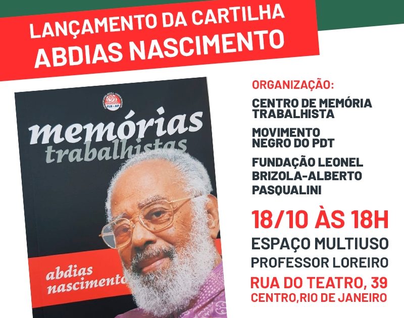 O Centro de Memória Trabalhista da Fundação Leonel Brizola – Alberto Pasqualini (CMT/FLB-AP) lança no próximo dia 18, mais uma cartilha da série “Memórias Trabalhistas”, às 18h, no Espaço Multiuso Professor Loureiro. Desta vez, contendo a biografia do ativista negro Abdias Nascimento, fundador do Movimento Negro do PDT. A publicação é parte integrante do trabalho de resgate histórico que tem sido realizado pelo CMT, com grandes personalidades políticas que ajudaram a construir o legado do Trabalhismo no Brasil