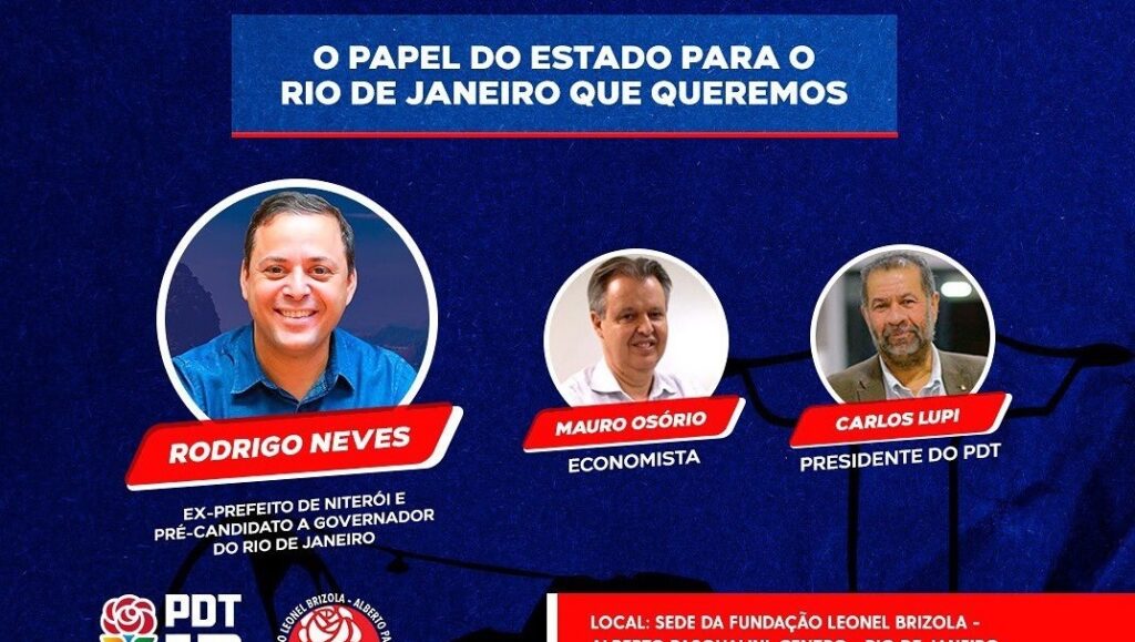 Última aula ocorre nesta sexta-feira (24), na sede da Fundação Leonel Brizola – Alberto Pasqualini O presidente nacional do PDT, Carlos Lupi, e o pré-candidato a governador do Rio de Janeiro, Rodrigo Neves, realizarão nesta sexta-feira (24), às 18h, o debate de encerramento da edição anual da Escola de Candidatos do